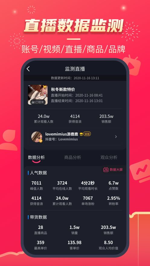 抖查查app手机免费版是一款专业化的数据分析工具,有效连接了抖音的电商平台,更好地进行电商销售的数据统计与分析,提升电商销售的运营管理,持续优化各环节。