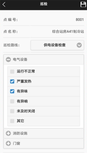读取成功后,进入巡检操作界面:按照提示,在现场逐项巡视检查、填写信息、拍摄照片,
