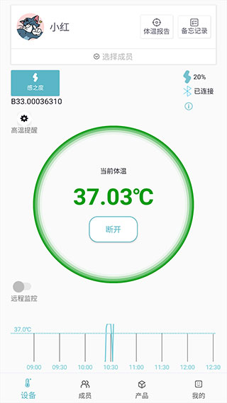 6、感之度产品配有医用级胶贴,可多次使用,并通过充电盒充电。2、单个账户可多用户监测 当体温到达用户设置的报警值时发送提醒 通过邮件或短信导出体温信息
