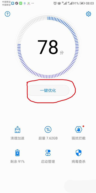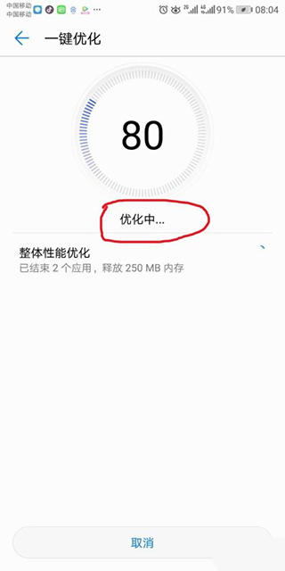 【应用管理】应用轻松管理,省电运行更快2、等待优化中。