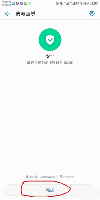 5、病毒查杀完毕后在最下边点击“完成”即可。
