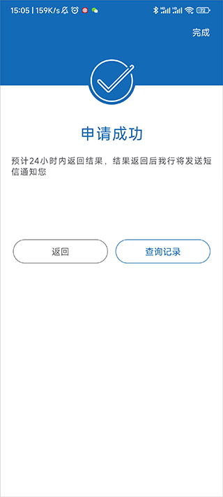 3、验证完就申请成功了,不放心的话还可以点击查询记录