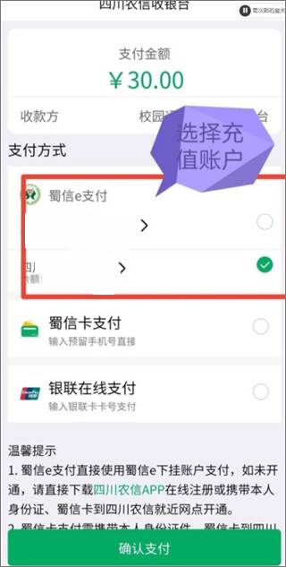 选择充值账户,点击"立即支付"