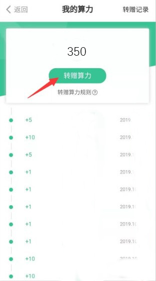 5、如上图所示,我们点击红色箭头所指“转赠算力”按钮,弹出一个小窗口;