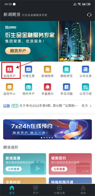 1、下载并安装软件后进入软件主页,点击期货开户;
