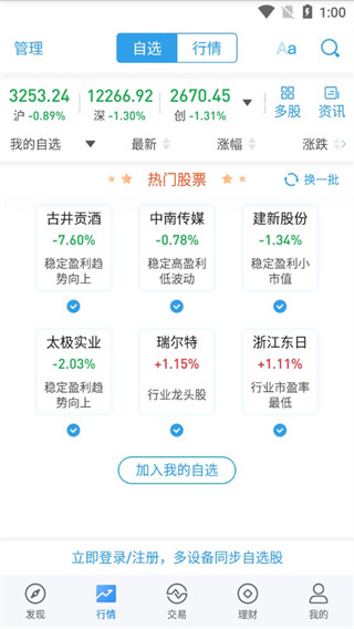 2、当推荐的股票你不满意时,你可以自行搜索添加,找到自己喜欢的股票板块。