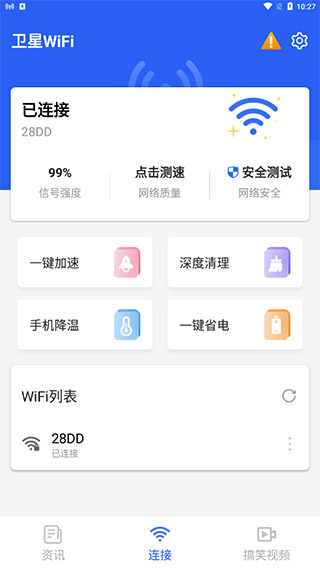 这是一款由杭州西芽网络科技有限公司开发的手机WiFi网络一键连接应用。使用它可以免费一键接入中国移动CMCC、中国电信ChinaNet或中国联通ChinaUnicom网络,解决无法上网的问题。你还可以利用软件的解锁功能来破解带密码的WiFi,非常实用。你认为它的功能仅限于此吗?那就错了。该软件还具备手机清理功能,包括手机加速、深度清理、一键降温、实时分析等,全方位解决你的困扰。在连接WiFi的同时,你还能浏览新闻、观看视频,使生活更加多姿多彩。感兴趣的朋友们赶快下载体验一下吧!