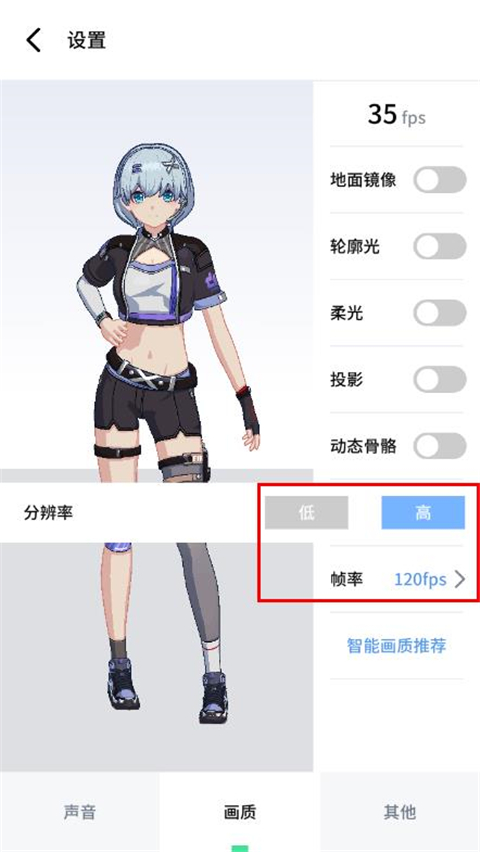 3、点击画质,可以更改分辨率和帧率,可以看见画质从模糊变成高清。