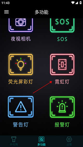想要霓虹灯效果,可以进入多功能页面中点击霓虹灯即可
