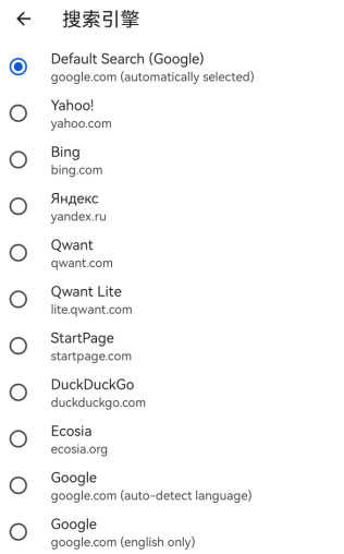 第五步,在列表里选择你要使用的默认搜索引擎就可以了。