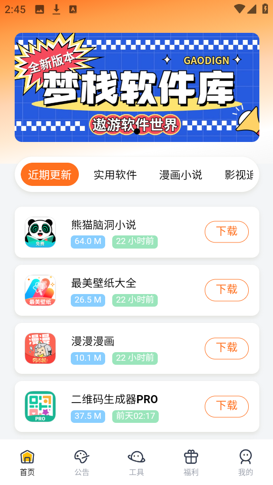 1、首先在本站下载安装梦栈软件库app。