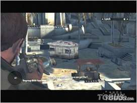 本关凯恩将首次使用狙击枪,一上来先把右方灯塔的哨兵干掉,之后从你的角度向下看有4个哨兵,其中3个围着火堆说话,干掉其中一个以后一个会选择逃跑,结果引来更多的敌军,并且有两个敌人从据点出来后迅速向Carlos移动,不管三七二十一,先把那两个人干掉,因为本关不可以让Carlos受到攻击。之后清理剩余敌兵。让Carlos移动到大门前。