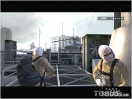 上一层楼过走廊回来到一个平台,解决这里的3个敌人后,用平台上的火箭筒将下面的两辆装甲车消灭,此时会有飞机飞来,不过先不要理会他,刚才装甲车方向右上方的楼上有一个隐藏的敌人,如果不消灭他的话你会死得很惨,之后用火箭筒解决飞机,这里也有一个简单的方法,飞机的飞行路线很有规律,会多次从平台的铁架下方生起,所以只要瞄准那个方向守株待兔即可。