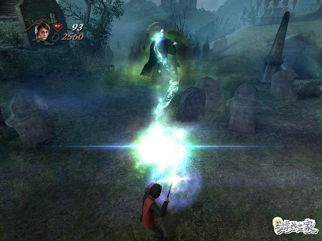 之后根据剧情,哈利波特会和伏地魔进行魔杖对决!这个时候不用担心魔杖上的较量,因为无论魔杖间的光球距离你有多近,都不意味着你将要失败。此时伏地魔依然会同时召唤骷髅来进行攻击,但是和之前只用魔杖进行反击的状况相比,哈利波特现在拥有了更为强大和实用的武器,那就是两个魔杖之间的光球!这个光球可以随着哈利波特的移动而移动,而且因为能量巨大的关系,杀伤力也非常强,无论是面对骷髅还是地面上的石头,都会在接触到光球后变得粉碎。这个时候除了要保持不让骷髅靠近哈利波特外,另外也要忙里偷闲地将右边凹地附近的石块弄碎,这样做的目的就是让哈利波特可以在接下来的战斗中拥有更为广泛的移动空间。一段时间的拉锯战后,伏地魔将会使用它身后的雕像来进行攻击,而这时虽然不会再出现骷髅,但是雕像的攻击力却非常夸张,基本上3次攻击就会将哈利波特的生命值降为0。此时要做的,就是在雕像出现的第一时间躲到右边的凹地里,注意最好站在凹地里靠近伏地魔的一段。之后在雕像砸向你的时候,快速向后躲闪,这样就可以确保自己的安全。只要仔细观察,就可以发现雕像在持续三~四次的攻击后,会在地面出现一段时间的停顿,这个时候抓紧控制光球去攻击雕像,一般反复三次左右,就可以利用光球摧毁雕像,而这也就意味着终于战胜了伏地魔……