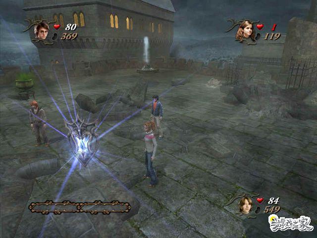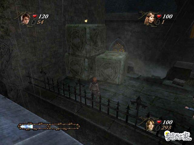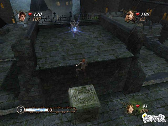 2.中间的路会通向一处分成很多小格子的正方形区域,在这里需要不断里利用锅炉炸毁墙壁开辟道路,并不断地关闭喷火机关。注意这里的一个大型正方体石块,首先利用漂浮术将它移到第一个平台上,然后再转移到第二个平台底下,并利用它爬上第二个平台,获得这里的大型巫师盾。