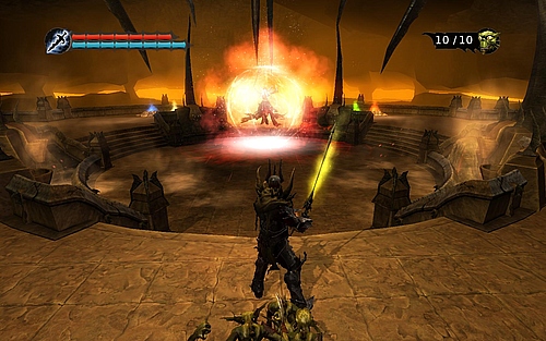 最终BOSS能召唤大量敌对的小鬼,不过好在这些小鬼都贫血...轻松解决后根据BOSS防护罩的颜色放出对应颜色的小鬼攻击。受到一定伤害后,BOSS就会开始使用大范围的旋转攻击,此时切记进攻不可贪多,一旦防护罩消失,就应即时召回小鬼。