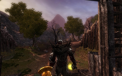 城堡的吊桥起初是没有降下的状态,从旁边的小路进入