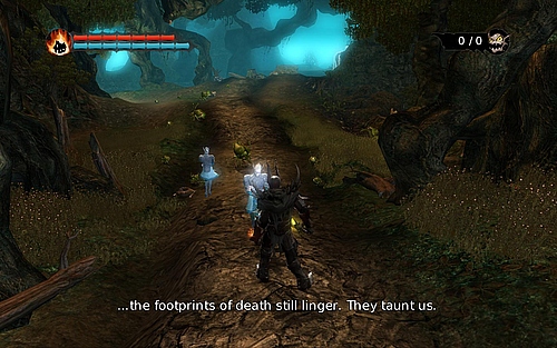 从spree拿熔炉的地方出发,左转后沿这条小路直走,半路会遇到村名跟你说奇怪的树根的事情,继续前进,进入森林