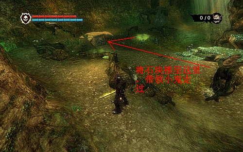 这里先推动石块制造道路,再利用间隙砸开大门,前面就是传送点,将先前得到的HIVE搬过去即可,绿鬼入手。之后可以先解决一左一右2个树根,也可以直接先去拿蓝鬼。看个人喜好,没有固定要求,之后的攻略以蓝鬼为优先顺序。