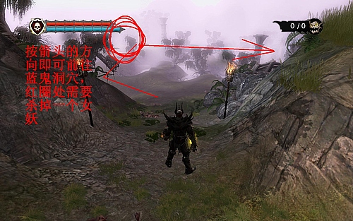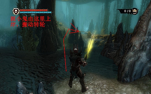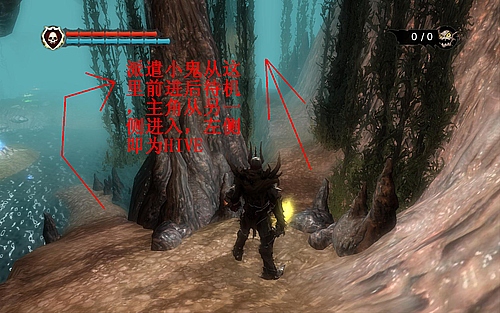 带上红小鬼后回到understreets,在城堡入口的附近用火焰小鬼打开道路进入