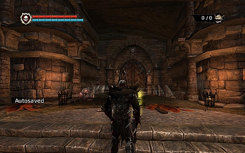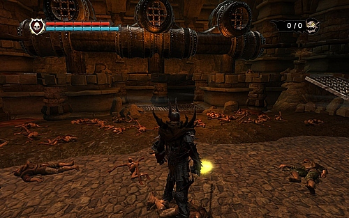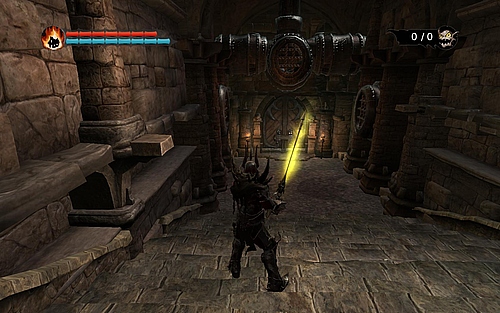 地图不是太大,在这里可以找到第2熔炉(需要杀死2个召唤骷髅,左右分开解决,难度不大),之后推动转轮会出现道路回到入口