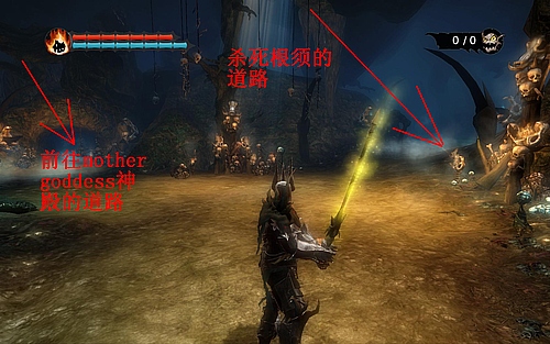 在骸骨洞的底部出现分支道路,如图示杀死根须后进入另一条道路
