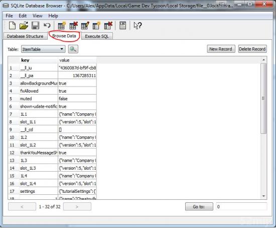 1、使用 SQLite DB Browser 打开存档目录下 file__0.localstorage 文件。