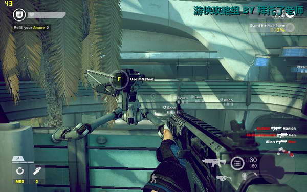 机枪射程远,弹夹容量大,但是威力不大,而且准心太低。F键可以选择离开