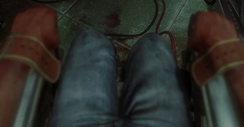 在游戏主界面,鼠标向下移会看到一个人被绑在椅子上(下图)