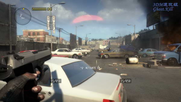 大街上有很多平民,可以杀,杀多了会任务失败,所以还是不要管了。来到这个停车场, 杀光所有敌人后回到自己的车上,一路开车逃过敌人追捕后过关。