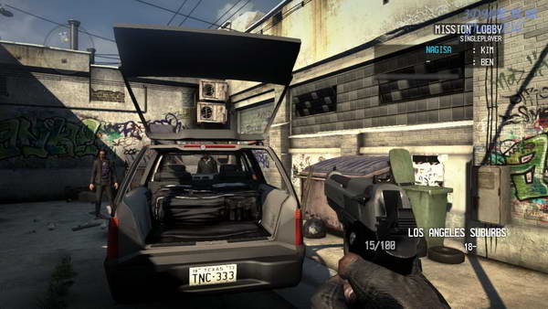 跟着两个队友从房间里出去,外面敌人数量不少,一起杀出一条血路来,到下一栋房子后和队友到正门口, 不过这时候大量敌人围了过来,所以要在房子里防守。