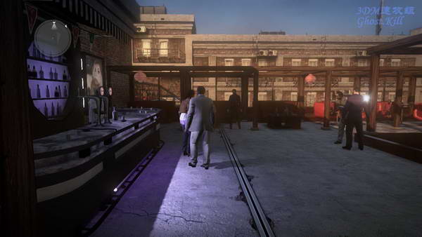 等俩人过来后门自动会打开,进去后穿过通道就是两个看门的敌人,二话不说的拳头伺候, 干掉后进门是一个舞厅,穿过舞厅来到室外。