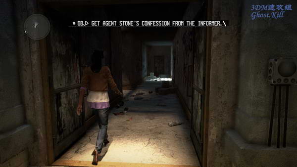 和之前关卡一样,又是千里追凶,一路上跟着目标跑就可以了,会不断地有敌人出来阻碍, 最后追到一个仓库里,杀光敌人后在地上找到了女女身上的发信器,打开红门出去后彻底跟丢,过关。