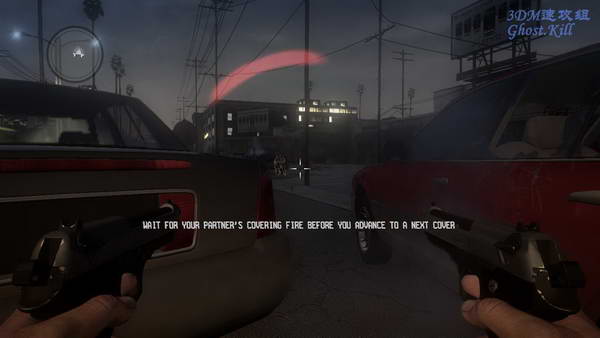 来到停车场之后友军的直升机被打了下来,不过没太大影响,杀光剩下的敌人来到公路上, 从右侧的掩体绕到敌人侧面杀光后上车。