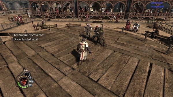 最后的比赛比较悲催,用断剑对付敌人,捡起他们的武器收拾以后,进入最后的两个BOSS,战斗没有什么好说的,应用刚学的技能就可以了!最后他们两个会发飙,变身,然后几招挂掉他们!冠军到手!