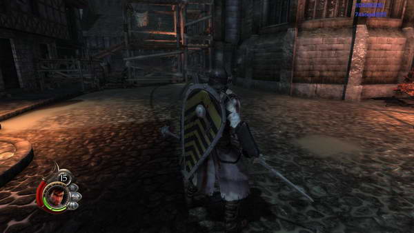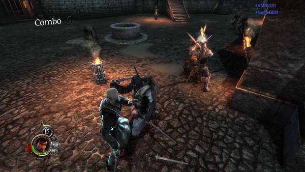 杀掉所有小兵以后,往前开进,房顶上面会先弩兵戒掉他们。然后协助同伴推开囚车。遭遇一大帮敌人,解决后爬上木台!一直往前走,前面路堵死了,过CG都,猪脚会变身,然后侧面有一个发亮的木板,上面按E键打烂后,变回原型继续前进。前面水井处有几个小兵,解决掉他们,然后在和同伴推开囚车!