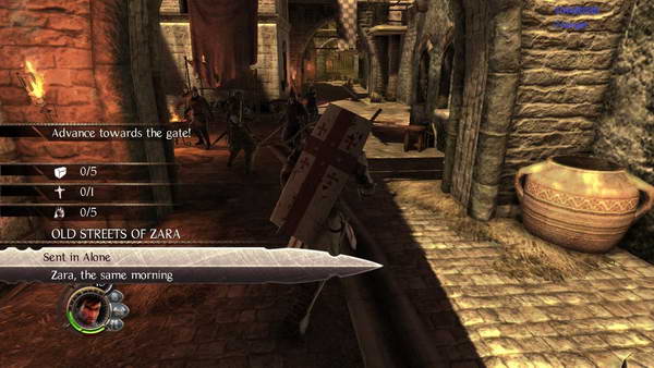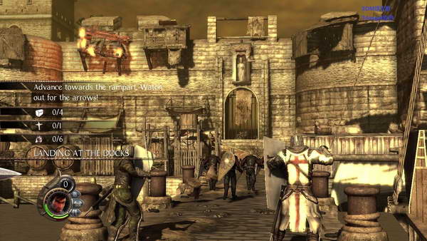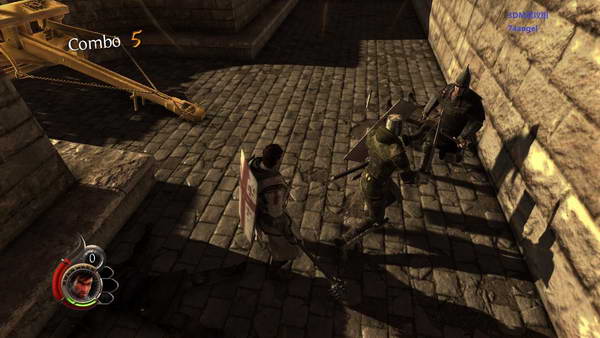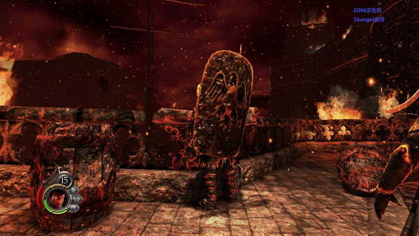 杀掉一帮很凶悍的卫兵以后,和同伴推开弩车,上去把门打开,城墙上面会有弩兵,杀掉他们,下去在推开弩车!走过去是一道门,打开门就是BOSS了,干掉他没什么难度,主要很麻烦,血很厚,打一段时间就进入冥界模式,干掉他两个分身恢复正常打他真身,这样重复打几次!