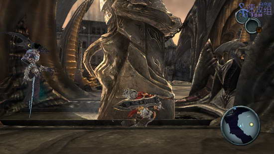 干掉BOSS后发现周围的石像有两个不在正确的位置上,到石像两边按B推动,之后进入过场动画,动画中我们得到翅膀。