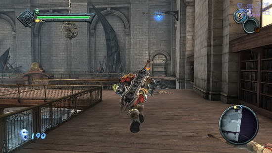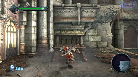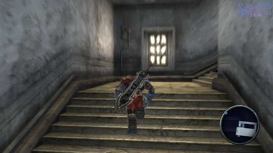 我们从石人离开的门进去,走左边的楼梯,到了一个大厅,从楼梯断口处跳下去,直直走,前面有个缺口,可以抓住跳上去。