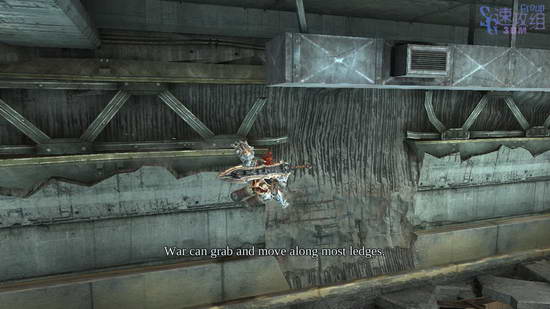 来到左边有个石台的地方,按住B推动石台,推到墙边,然后踩着跳上去。楼上有断口的地方跳过,抓钢管过