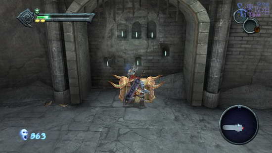 得到飞刃后先干掉几个火蝙蝠,按住LT加RT蓄力然后扔出去,打中的话一下一个。然后干掉爬上来的骷髅兵。最后会来一个毒液怪,身上散发着毒气,不能碰,按住飞刃蓄力攻击可以散掉毒气,然后用剑砍,打发和之前的大怪无大异,还是看他要攻击的时候冲刺躲开,最后可以直接B干掉他,那样把他脑袋拉下来后他的脖子里会向外喷毒液,碰到的话可会很疼。