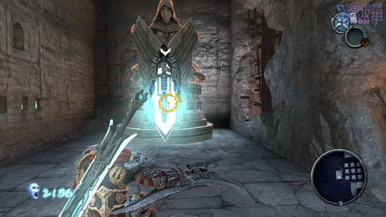 再次跳到洞里,一路来到图中这个有个被锁链绑住的石块的地方,打烂石块,获取新武器,飞刃。