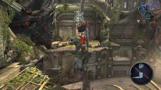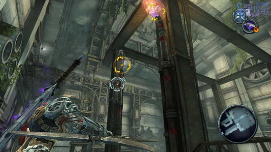 到没有水的房间二层启动机器,右边的火车底盘会被移到左边,然后我们下去把移到左边的那火车底盘一拳打出去,把完整的车厢拉到机器上,再回到二楼启动机器把整节车厢移到右边,然后全套打烂右边水晶挡住的地方,再把车厢打过去当垫脚石,最后踩着车厢跳到网子上离开这里回到一开始遭遇BOSS的大厅。