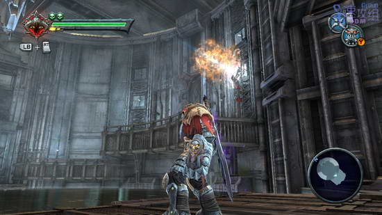 一开始的大厅又有新敌人,拿着双刀的怪,看他准备挥刀时冲刺躲开,或者突刺攻击也可以,对付这种怪算是比较好用,杀光之后去左边的门上二楼,从二楼的门出去走左边,打烂水晶进门。