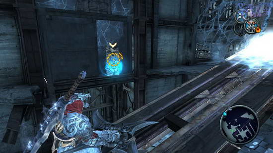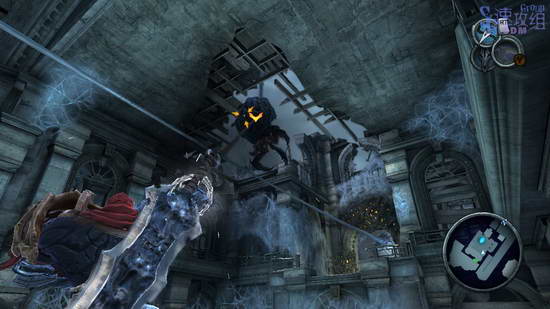 进门后左边有水晶,打破后有个机器,使用之后时间控制器升起,我们从右边的柱子上爬到房间最高层,有个可以踩着的钢梁被蛛网吊着,不过另一头是个蜘蛛蛋,打烂了之后我们站在这边这一头,让钢梁翘起后使用时间减速,然后跑到另一边最高层的箱子那里拿钥匙,然后原路返回刚刚封印住的门那里开门。