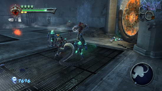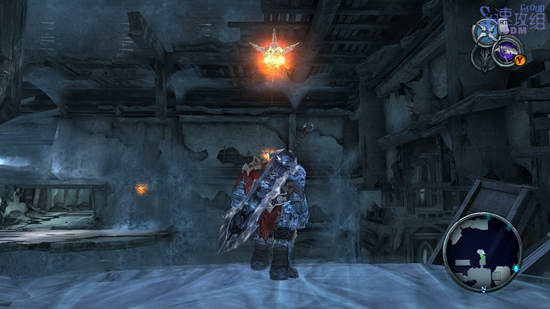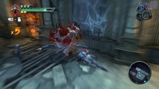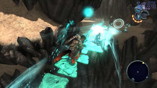 通过沙地后又来到一个山洞,记下来会有几个大型的盔甲兵,他们斧子不小,前冲挥斧子要小心,干掉之后会出现拿枪的敌人,说是炮更合适些,干掉他后捡起炮,接下来又是TPS时间了,这可比天使的枪爽多了,按RT发射,LT引爆,最多五连发,射出去之后可以任意时刻引爆,威力很不错。