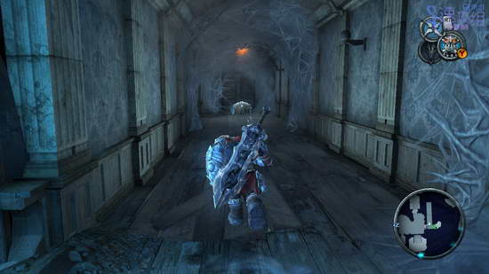 A点的蜘蛛用锁链拽下来之后会把地板砸个洞,我们跟着从洞里跳下去干掉大蜘蛛,那扇门的封印只剩下中间的大蜘蛛了。