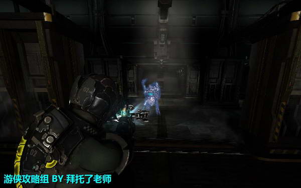 从大型升降机中出来开门后,Nicole的幻象再次出现并掐住了Isaac。猛按E键挣脱。