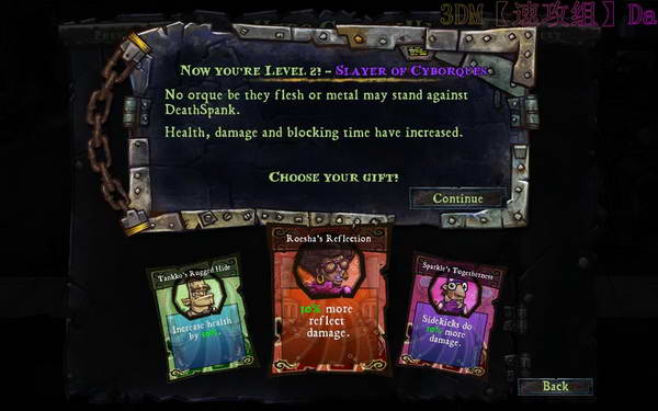 升级了!(下面的卡片选择属性:血+10% 盾反伤+10% 2P+10%伤害)