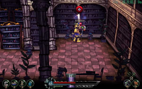 先去事发地方右边的图书馆,敲下警钟,管理员会打得我透明!
